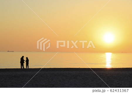 検見川浜海岸 浜辺の親子像