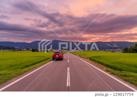 《新潟県》夏の田園風景の夕暮れ・魚沼の大地