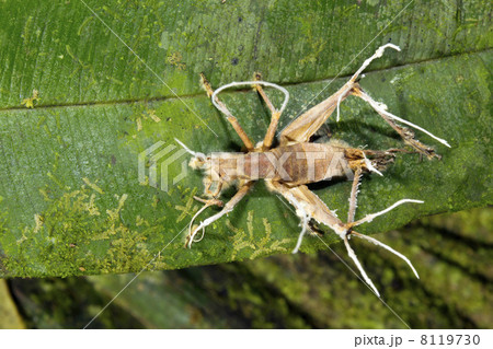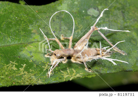 Cricket parasitised and killed by Cordyceps fungus in the Ecuadorian Amazon