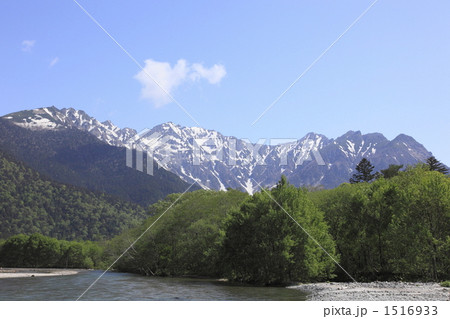 新緑の梓川と穂高連邦1