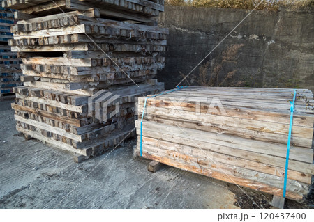 細かくは種類がわからない木材 材木 丸太 積まれた建築用木材