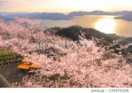瀬戸内しまなみ海道・岩城島 積善山三千本桜(後方に多々羅大橋) 夕景
