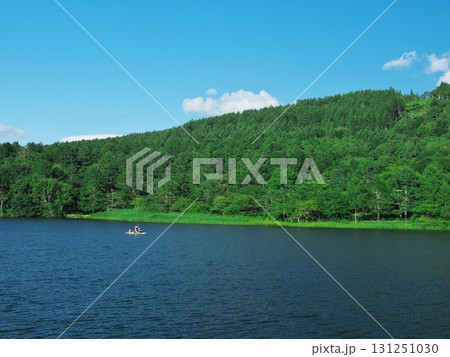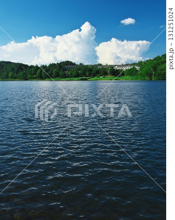 夏の梓湖から上高地方面に沸いた積雷雲を望む