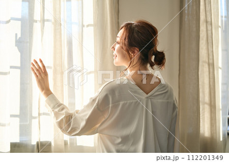 のんびり・ゆったり:窓辺でリラックスして本を読んでいる若い女性