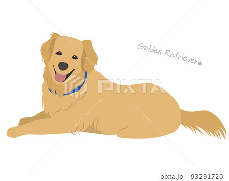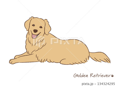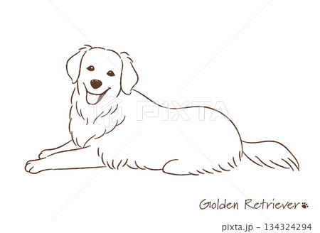 手描きのゴールデンレトリバー線画_ベクターイラスト
