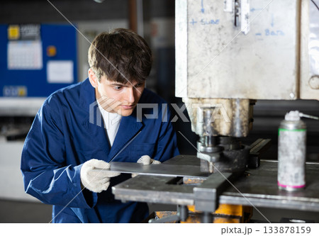 パンチプレスで穴あけ加工するオペレーター セットプレス オートパンチャー