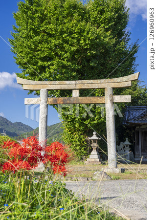 重利八幡宮と彼岸花(京都府亀岡市曽我部町)