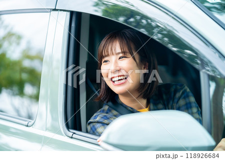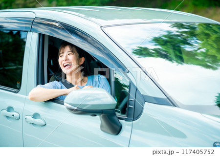車をこすった女性 車を運転中の女性 ドライブに行く女性