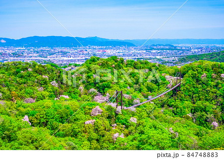 福岡県苅田町の里山等覚寺にあるブランコと市街地遠望
