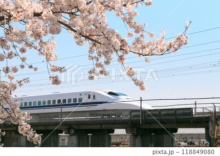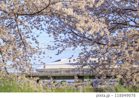 満開の桜と東海道新幹線(神奈川県平塚市)