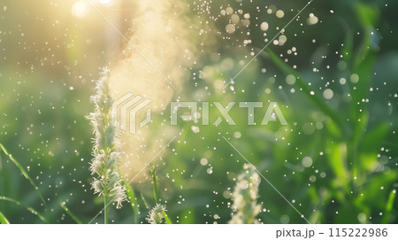 "緑の季節にイネ科の植物の花粉が飛散している."<AI生成素材>