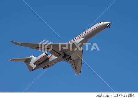 Small business jet, an airplane taking off in the air. Private jet