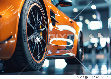 High speed racing car on track, showcasing dynamic motion and precision. powerful tires grip asphalt, emphasizing thrill of motorsport