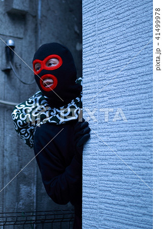男性1人 (住居侵入 泥棒 犯罪 違法 犯人 悪人 盗難 目出し帽 変装 容疑者 事件 犯罪者)