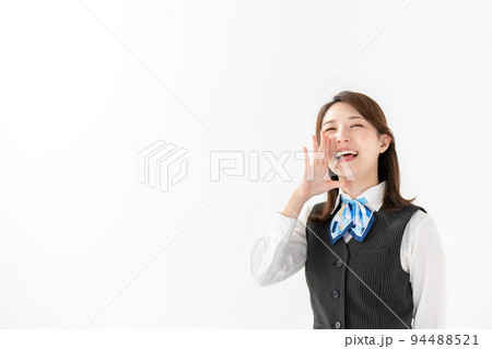 制服の女性 ビジネス 指差し