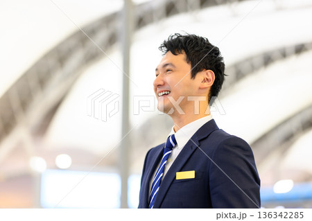 空港スタッフ 未来を見つめるスーツ姿 ■撮影協力:関西国際空港(KIX)