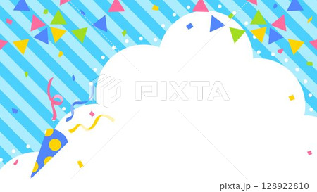 雲型の背景フレーム、クラッカー、ガーランド、紙吹雪のデコレーション