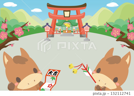 午年 年賀素材 2026年 初詣に行く午のテンプレート2