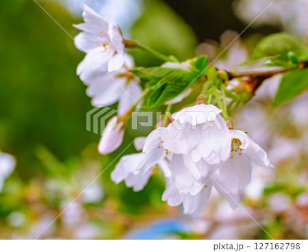 桜咲く春の美しい街並みと暮らしの風景。人々が明るく暮らせる自然と住宅が溶け込む街づくり。
