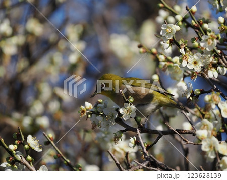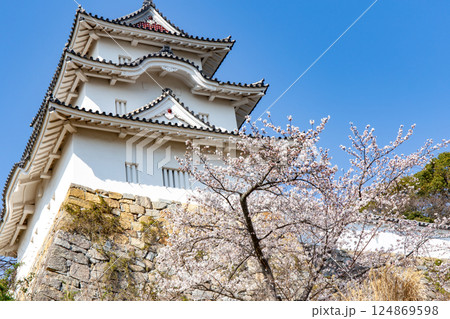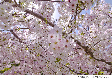 青空の下、ソメイヨシノの桜の花の満開の風景。