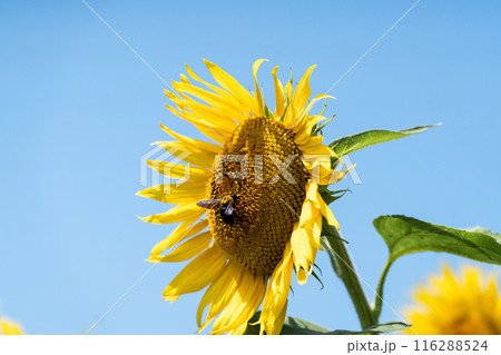 ヒマワリの蜜を吸うミツバチ
