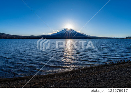 【富士山素材】山中湖から見るダイヤモンド富士【山梨県】