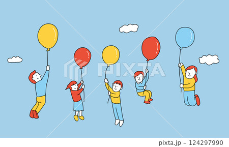 風船で空に浮かぶ子供たちのフレーム