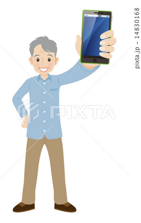 スマホ・スマートフォンを持って突き出す男女ビジネスパーソンのシンプルイメージ イラスト素材