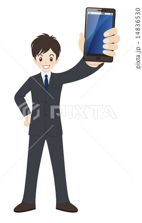 ビジネスマン スマートフォンを突き出す