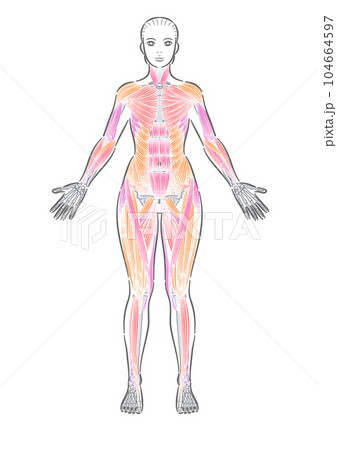 女性 全身筋肉 前面 表層