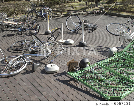突風で倒れた自転車
