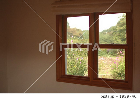 庭に面した白い窓枠の窓