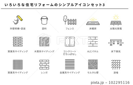 いろいろな住宅リフォームのシンプルアイコンセット3、ベクター
