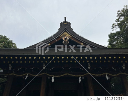 和歌山県和歌山市の神社、竈山神社の拝殿の屋根にある天皇家の十六菊花紋です。