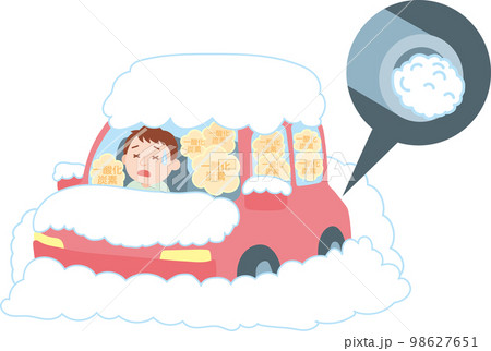 雪害イラスト_雪による車内閉じ込め_吹雪_背景色あり