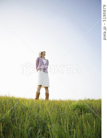 草原に立つ女性
