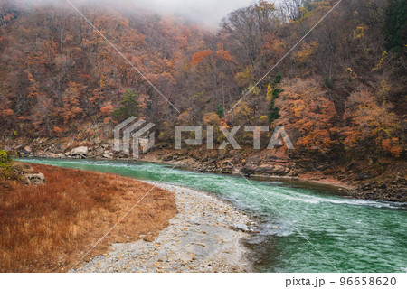 【晩秋】朝霧の立ち込める犀川【東筑摩郡生坂村】