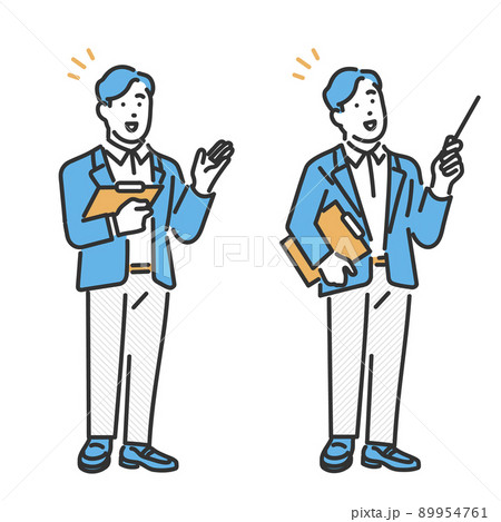 顧客に説明をするビジネスパーソンの男性のイメージイラスト素材