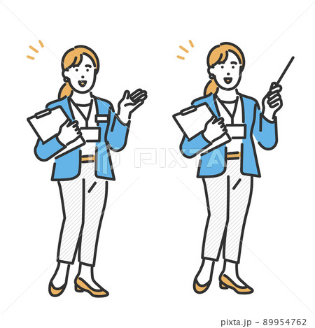 顧客に説明をするビジネスパーソンの女性のイメージイラスト素材