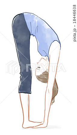 ヨガの立位前屈のポーズをする女性(深い前屈・浅い前屈の2種セット)