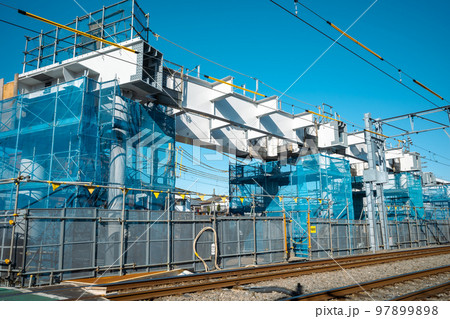 鉄道の高架化工事 東京都 東村山駅周辺 2022.12 a-3 ライトトーン