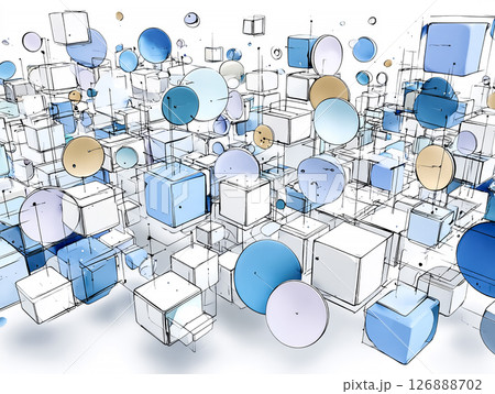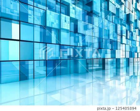 CG背景イラスト 積み上げられた多数の透明なクリスタルキューブ