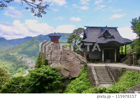夏の山寺の風景 立石寺 開山堂と納経堂 山形県山形市