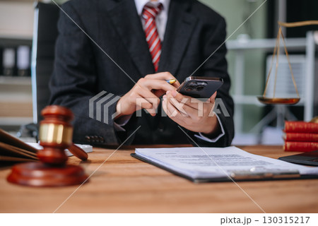 justice and law concept.law the desk, books, balance. male judge in a courtroom the gavel,working with digital tablet, smartphone