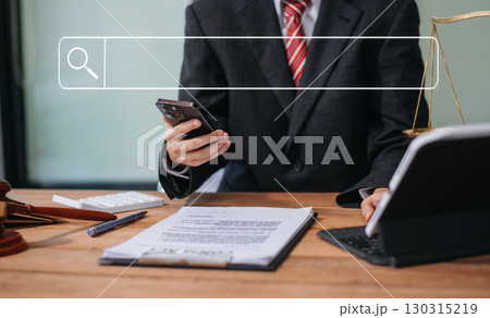 Searching Browsing Internet Data Information Networking Concept with blank search bar.justice and law concept.Male judge in a courtroom