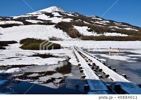 鳥海山と竜ヶ原湿原 冠雪と氷