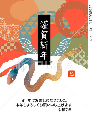 2024年辰年の年賀状イラスト: カラフルな龍の模様