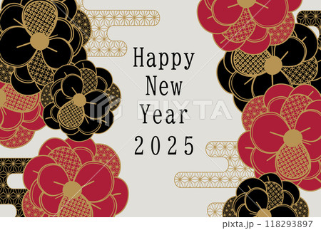 2024年賀状テンプレート「歌舞伎風デザイン」ハッピーニューイヤー 英語添え書き付