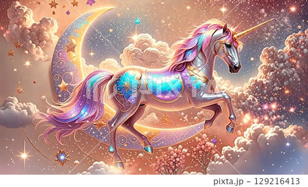 流れ星と雲が広がる幻想的なパステルカラーの夕空イラスト