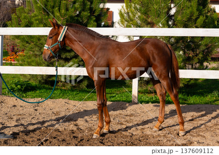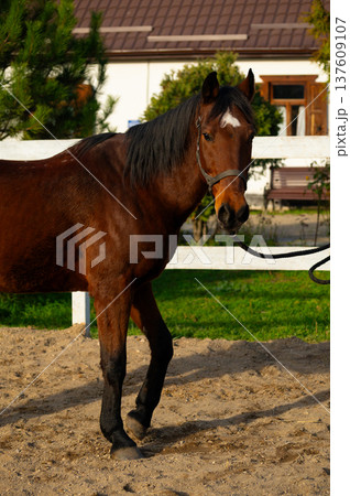 Handsome horse in the paddock. Farm. Ranch.